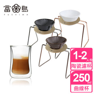 【日本FUSHIMA富島】風雅陶瓷濾杯+木片+鐵架+雙層曲線杯250ML經典組-3色可選 討論,推薦,開箱,CP值,熱賣,團購,便宜,優惠,介紹,排行,精選,特價,周年慶,體驗,限時