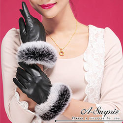 A-Surpriz 嬌貴雙色兔毛小羊皮手套 (氣質黑) 產品網址 http://tw.partner.buy.yahoo.com/gd/buy?gdid=4163629&mco...