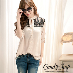 【candy小舖】典雅特約拼接黑蕾絲綴珠雪紡襯衫-可可 產品網址 http://tw.partner.buy.yahoo.com/gd/buy?gdid=4207039&mco...