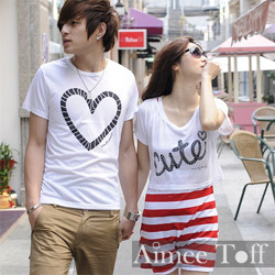 【Aimee Toff】韓版兩件套洋裝情侶裝(白)