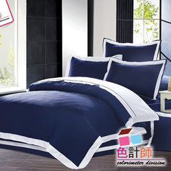 色計師【時尚藍+純潔白】加大八件式精梳棉床罩組