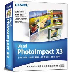 Ulead® PhotoImpact® X3是一套結合數位相片編修、自然彩繪、網頁設計及多媒體管理軟體,提供創意玩家簡單且容易上手的專業處理影像技術與特效,輕鬆設計出不同凡響的個人作品,精彩多樣化的影像呈現,滿足您的所有創作慾望!