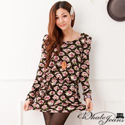 【WHALE JEANS】甜意碎花滿滿束腰長版衣(2色)