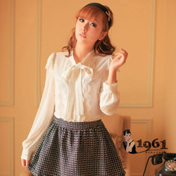【1961】唯美鏤空雕花複古飄帶長袖雪紡襯衫 前襟和肩部雙層的鏤空雕花 非常有層次感小立領帶飄帶飄帶 袖口部分也做了鏤空設計 非常有復古的感覺