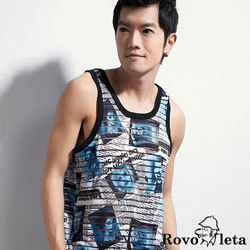【ROVOLETA】藍調照片造型塗鴉舒適彈力背心