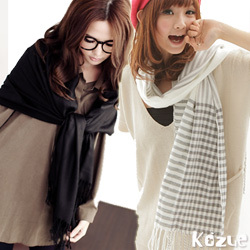 【kozue】寬版流蘇圍巾(黑)+清新格紋圍巾(淺灰) ●簡單上手變搭配達人!!●