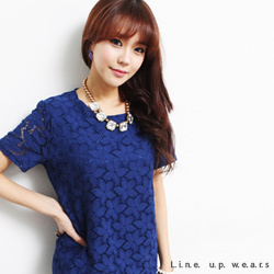 【韓國 Line up-Lady】韓國 。簍空透膚感 編織刺繡立體感花花圓領T (共二色) 今年不管是雜誌、電視、韓劇、甚至是街頭,都佈滿了花花蕾絲簍空的單品