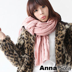 【AnnaSofia】鬆軟麻花厚軟織 超長圍巾(甜粉)