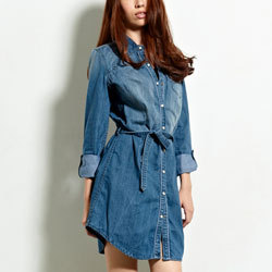 【GARCIA】貝殼釦綁繩長版丹寧襯衫