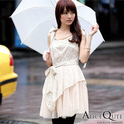 【Alice Qute】正韓.珍珠墜飾蕾絲綁帶洋裝(共二色) 韓國狂銷人氣爆單款! 100%韓國空運來台 獨特蕾絲提花布剪裁 輕柔網紗蛋糕裙甜美動人 珍珠x花瓣點飾氣質提升 後背拉鍊設計 附可拆腰帶x1&胸針x2