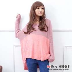 【米娜mina中大尺碼】悠閒美感~圓領上下撞色壓紋前短後長針織上衣,sasa 莎莎美妝專賣店