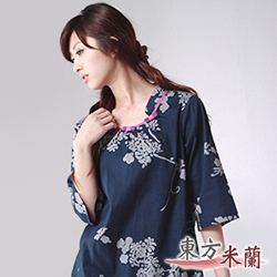 【東方米蘭】典雅中國風‧藍色花布五分袖長上衣 ~風采自信魅力無限,唯美典雅中國風~