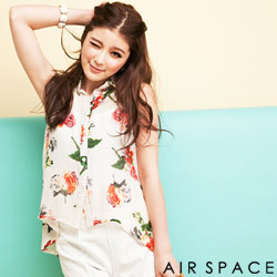 【AIR SPACE】歐式典雅花朵雪紡無袖襯衫(高雅白) 【 AIR SPACE 2012 S/S 】