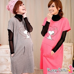 【Keep Chic孕婦裝】SNOOPY甜蜜感洋裝(共二色) 正版SNOOPY授權 愛心更添烤愛風味 HUG ME字樣更添甜蜜氛圍 讓媽咪們也能穿出流行孕味喔