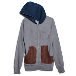 NI-MES 牛仔 丹寧拼接貼布 連帽外套 灰