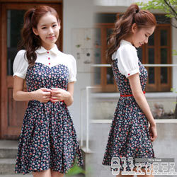 【911 korea】唯美浪漫˙方領碎花拼接連身洋裝(共二色) 優雅浪漫的方領蕾絲 微澎袖子超級可愛 拼接甜美碎花絕對加分 搭配腰帶唯美的組合配對!!