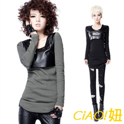【CiAO妞】時尚拼皮個性女上衣 (共二色)