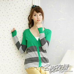 【名模衣櫃】三色條紋針織長外套-綠色 ★商品材質手感 描述: