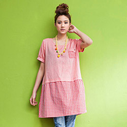 - ◇粉嫩青春◇拼接格紋