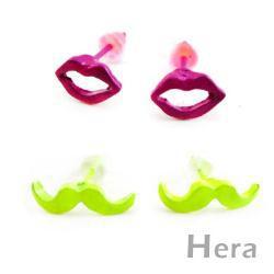 【Hera】赫拉 韓國飾品螢光糖果色鬍子嘴唇四件組耳環(螢光黃or紫) |