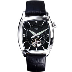 FIBER 時代廣場經典酒桶鏤空機械腕錶-黑/37mm