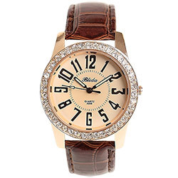 Watch-123 千年之戀-韓國同步晶鑽腕錶x褐色帶-香檳金/40mm