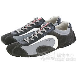 PRADA Nylon Active+S 異材質拼接綁帶休閒鞋(深灰色) 鞋面以牛皮、麂皮等多樣材質拼接,增添視覺的豐盈感,展現出獨特自我的時尚個性,魅力令人驚艷。