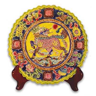 【鹿港窯】交趾陶盤飾【八寶吉祥麒麟盤】
