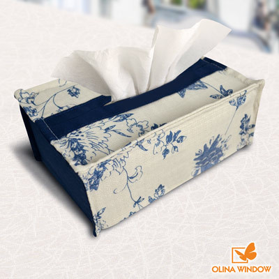 《歐麗娜窗飾》復刻版青花瓷滾邊拼接面紙盒 米底藍花卉 26cm×15cm(二入)