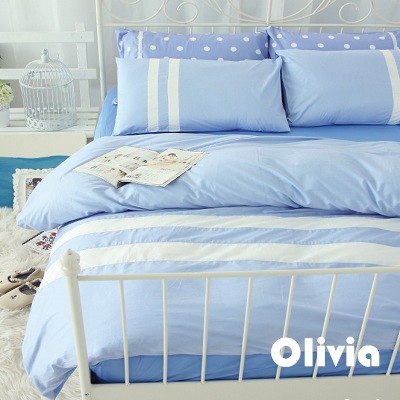 OLIVIA 《玩色彩 天空藍 白 水藍》特大雙人床包枕套三件組