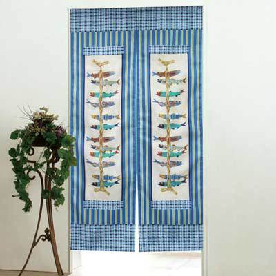 棉花田【串魚】日式印花長門簾-藍色(85x150cm)