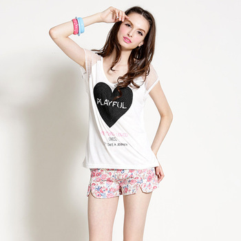 微絨感亮片一片片縫製而成的幸福愛心,背部是可愛的貓咪耳朵,細節滿點!肩部網紗透膚設計,性感小心機,搭配今夏最潮的平頂棒球帽和高腰短褲,成為100分街頭女孩,最玩味有型的質感棉T非此款莫屬!