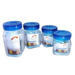 中性可愛的方形藍蓋玻璃罐、冷藏食品、甜點零嘴都十分有情趣!