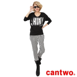 cantwo 都會時尚條紋褶褲(黑白條紋)