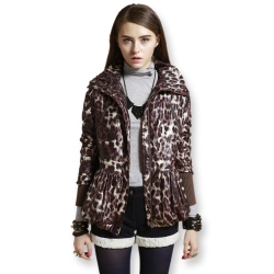 ICHE 衣哲 時尚街頭風 動物豹紋 輕搖滾龐克縮腰防風輕量外套