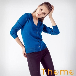 Theme 簡單V領開襟長袖毛衫外套(瓦藍)