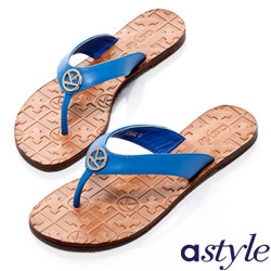 astyle 夏日尤物 牛皮細帶平底人字拖鞋─海軍藍