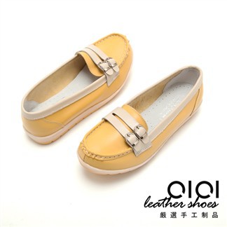 0101嚴選手工系列~撞色雙皮帶雙色底台莫卡辛休閒鞋(黃)