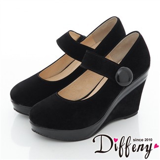(Diffeny)甜美名媛 俏麗鈕釦瑪莉珍楔型鞋_黑