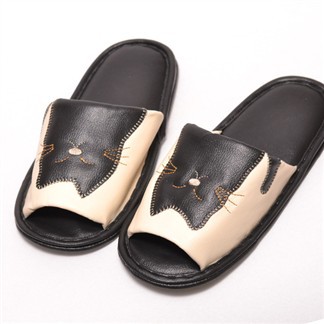 7net購物網【Ameber】 可愛黑貓白貓情侶拖鞋皮質地板防滑居家鞋Cute cat _0