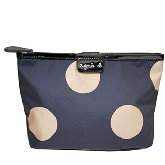 agnes b. 新款大圓點尼龍化妝包 (深藍-米金)