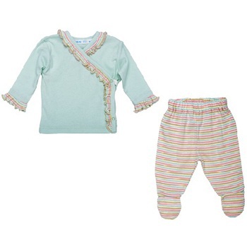 美國【Under the Nile】有機棉長袖側扣上衣及連腳套長褲套裝?(粉綠)
