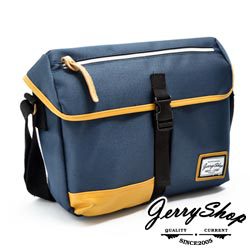 【JerryShop】配皮剪裁質感郵差包-藍色