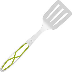 本商品一組含鍋鏟、餐夾各一,耐熱度達 225度C;可搭配不沾鍋具、洗碗機。不論煎肉排、蔥油餅或是香甜鬆餅,您都會在料理或翻面時以夾子或筷子輔助鍋鏟,避免食材掉出鏟緣。窄緣餐夾有鋸齒設計,抓穩食材避免掉落;凹折設計的餐夾側緣,也方便您手拿施力使用。結合鍋鏟與餐夾的工具,讓您節省收納空間,也避免烹飪時手忙腳亂找器具的慌張感。可吊掛收納節省空間。