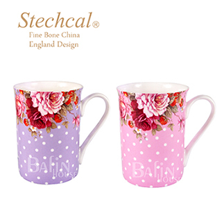 產品組合:Stechcal 波蘭玫瑰骨瓷馬克杯 (紫)+Stechcal 波蘭玫瑰骨瓷馬克杯 (粉)