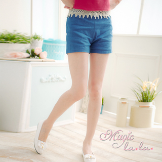 【Magic la.la.】織花蕾絲丹寧刷色小短褲(丹寧藍)A069