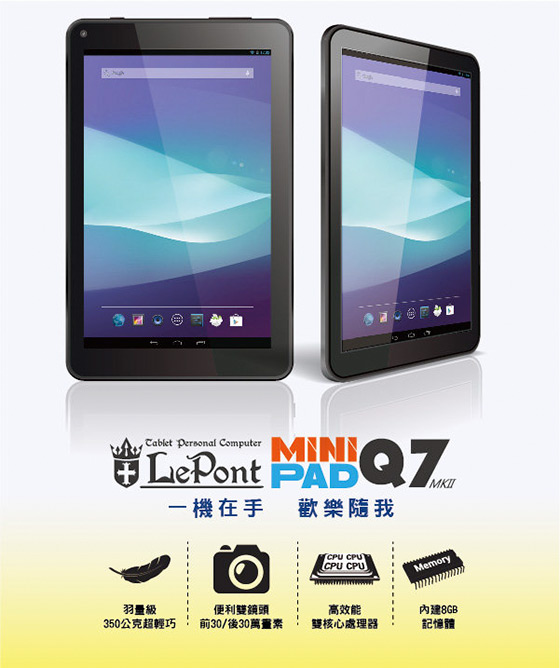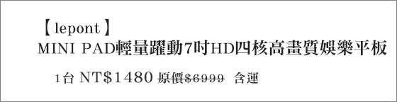 商品訊息簡述: 只要1480元(含運)即可購得【lepont】原價6999元MINI PAD輕量躍動7吋HD幼眥玥e質娛樂平板(黑)1台。