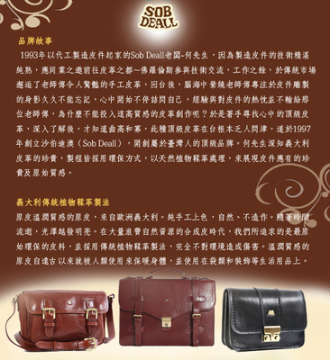 商品訊息功能: SOBDEALL技術力之證明台灣安心品牌高級進口牛皮,純手工打造金屬色LOGO,品牌辨識度極高