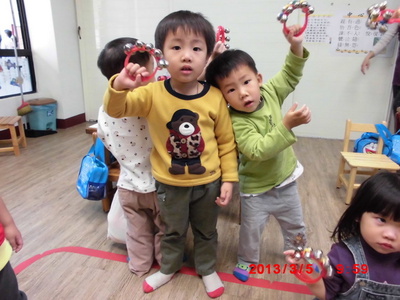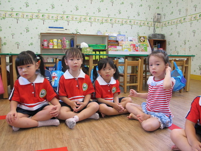 第一次上學的寶貝們學著上課要腳打叉,身體坐正嘴巴跟著老師念看看各個真是姿勢一百喔~~想念爸爸、媽媽放心理,...