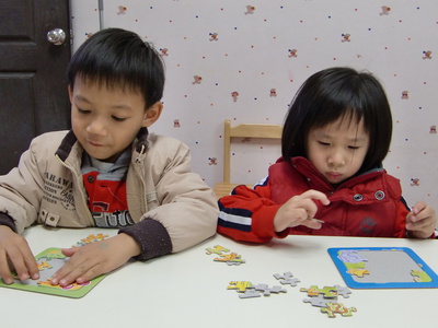 這樣拚圖對嗎? 你在看什麼啊!認真拼圖接下來要拼哪一片呢?讓我發呆一下